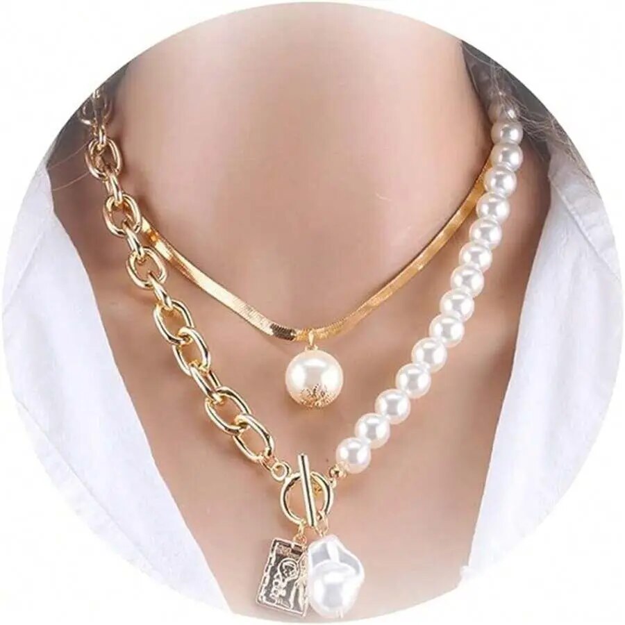 Obega 2 PCS Set Pearl Pendant Necklace For Women Gold Color Snake Chain Square Charm Choker Necklaces Simple Daily Jewelry – Sumsfashion