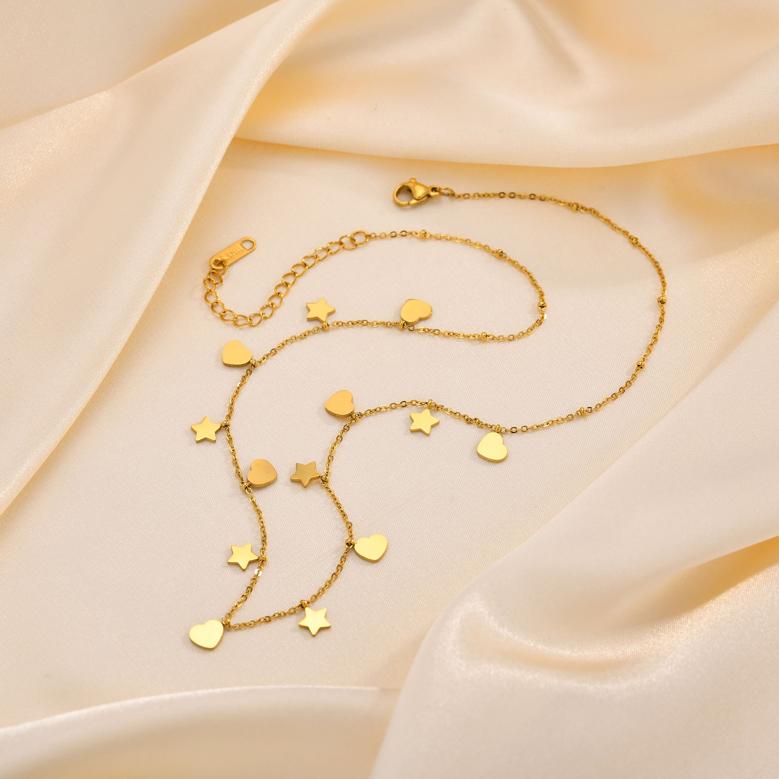 Statement Star and Heart Clavicle Choker Chain Necklaces for Women Stainless Steel, 18k Gold Plated Minimalist INS Jewelry NC-1547G – Sumsfashion